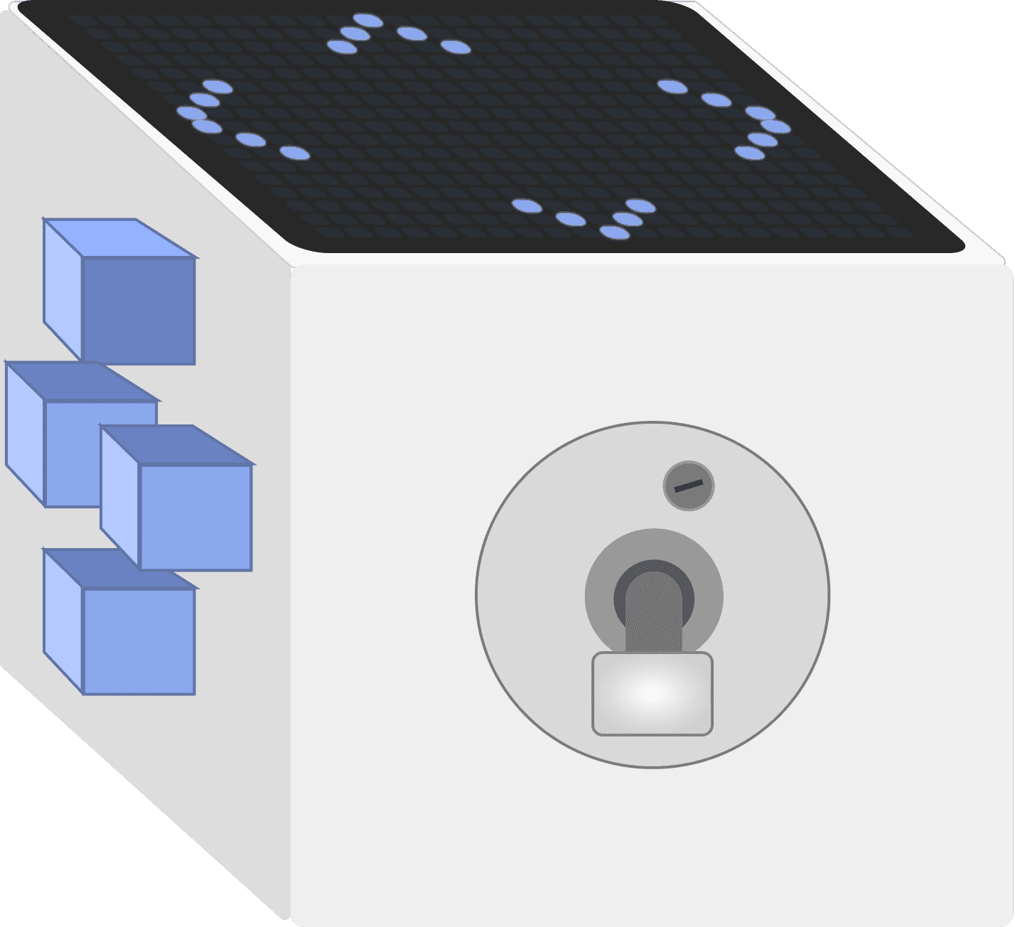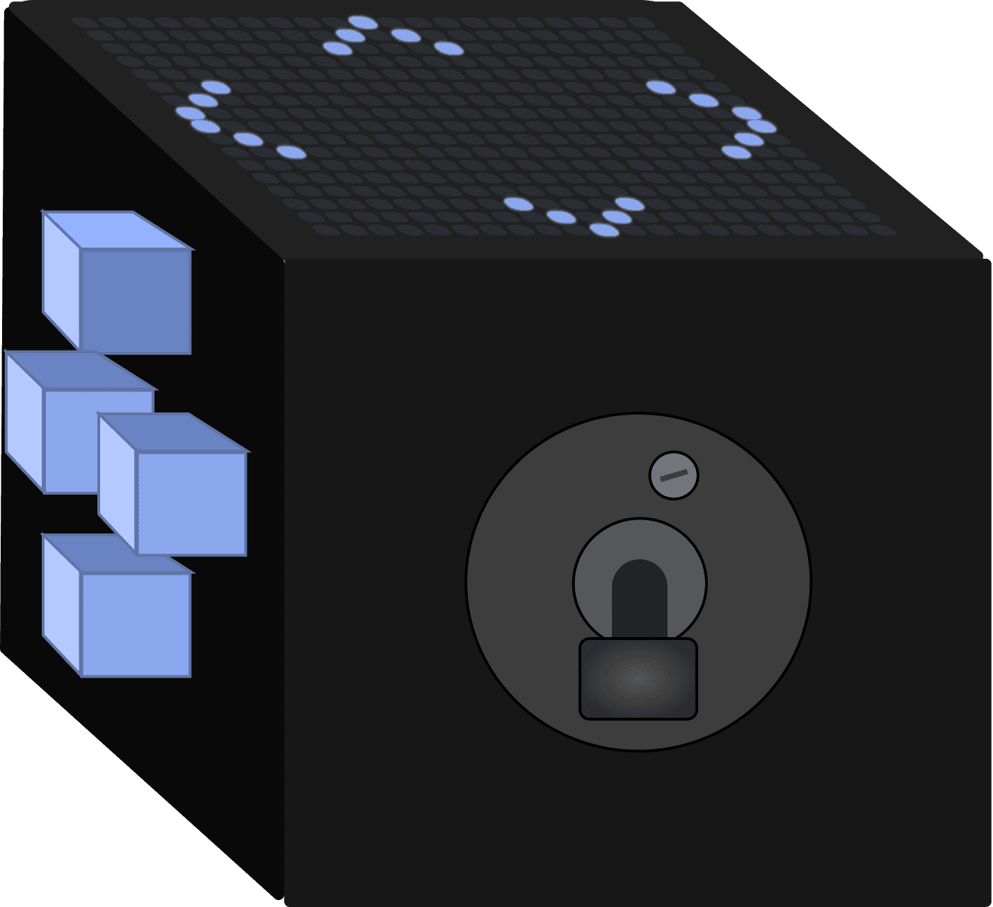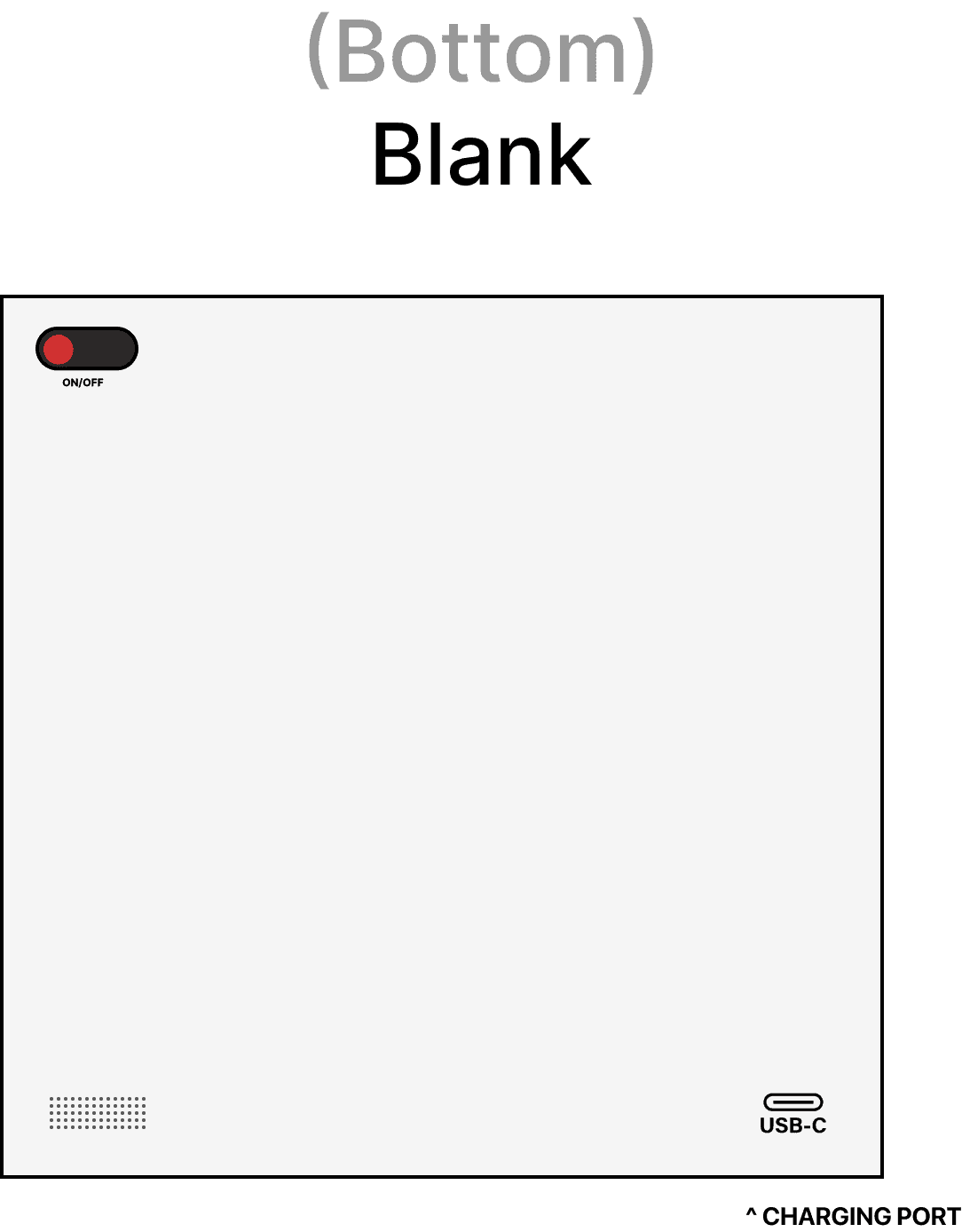 The bottom panel was intentionally left empty to allow the cube to rest on a flat surface, provide a way for it to charge, and be powered on/off. The front panel is additionally free of inputs to display the name of the cube for stylistic and ergonomic purposes.
