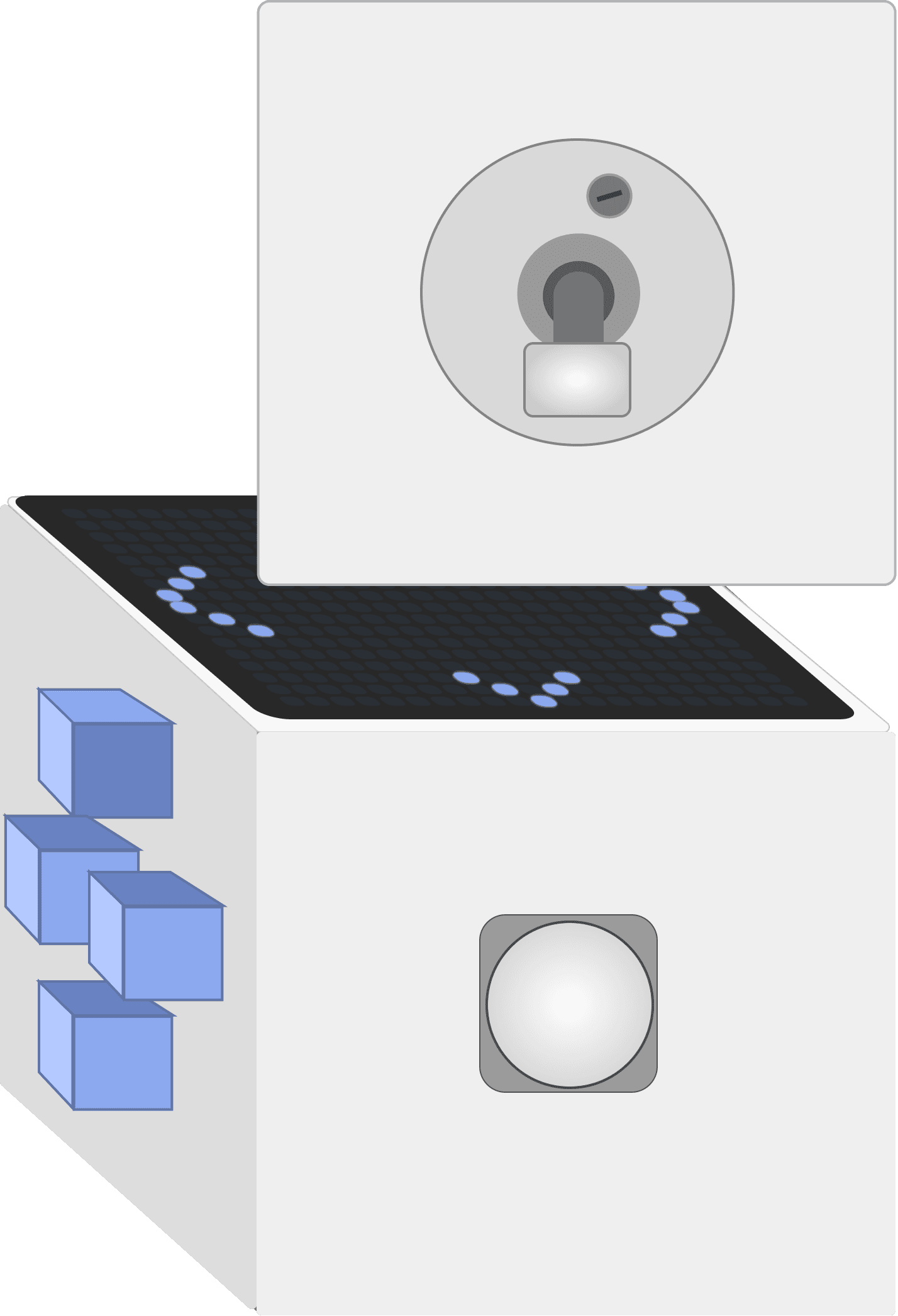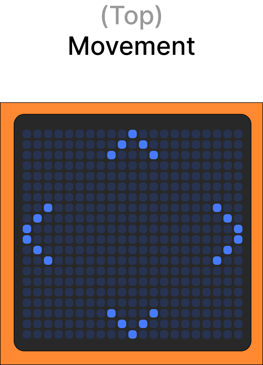 Enables directional input through swiping gestures for fluid control. This led panel can additionally serves as a engaging 8-bit display, showing short animations when the cube is in idle mode.