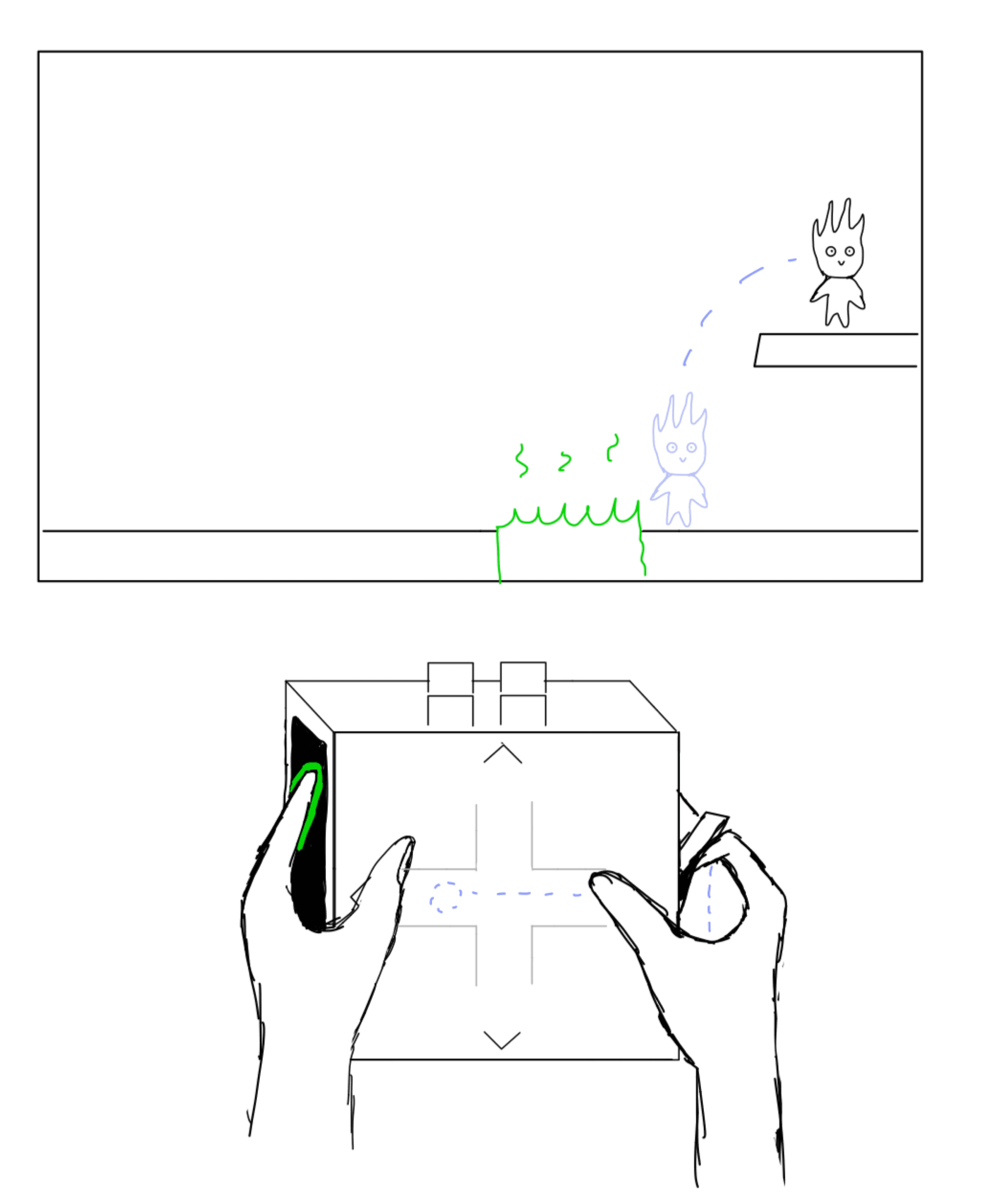 Since TACTIQ was a non-functioning prototype, I used the Wizard of Oz approach, where I observed participants’ actions and manually translated their inputs into a real controller to simulate gameplay. Each participant completed a quick run-through of a 2D platformer using both controllers, after which they provided feedback.